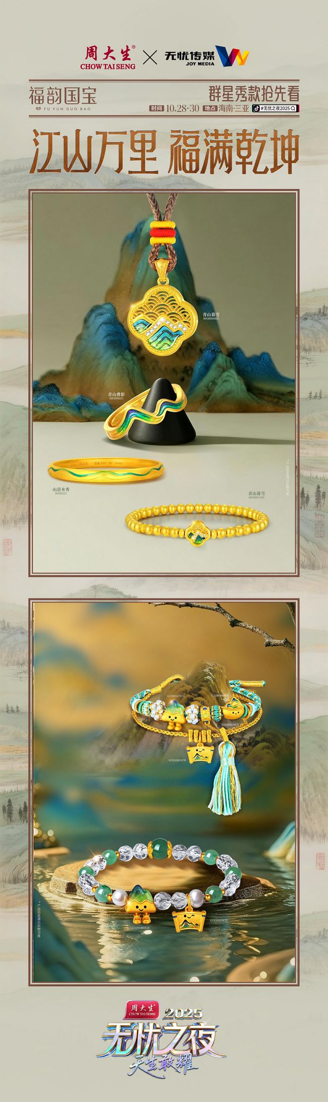 “无忧之夜2025”作为周大生与无忧传媒战略合作的首个重要落地项目,标志着双方以“跨界融合、内容驱动、生态共建”为战略方向,迈出了从理念到实践的关键一步。未来,双方将依托合资公司“大生无忧”,系统推进店播矩阵建设、垂类达人孵化、跨境业务拓展等核心板块,共同探索“商品IP化”的创新路径。