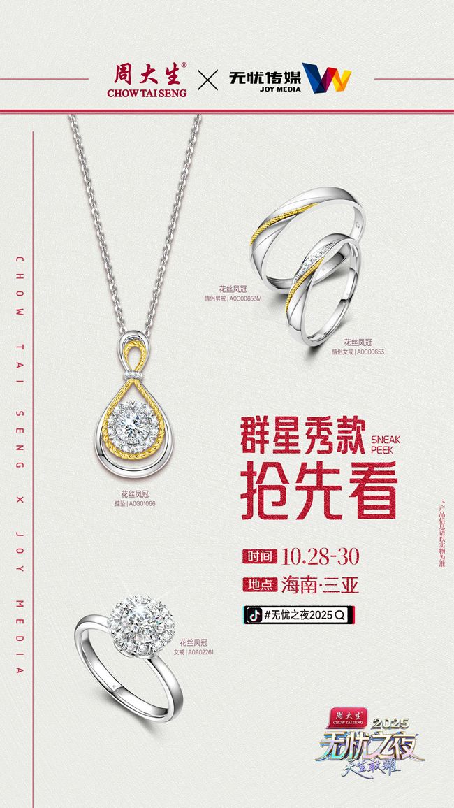 10月28日至30日,周大生独家冠名的“无忧之夜2025”即将在三亚盛大启幕。这不仅是一场备受瞩目的“红人奥斯卡”,更是周大生为黄金珠宝行业提供的“生态共建”关键样本。以此为序章,周大生将携手合作伙伴,持续探索“内容+供应链”双轮驱动的新范式,在全球消费浪潮中,展现中国品牌重塑产业价值的创新力量与坚定自信。
