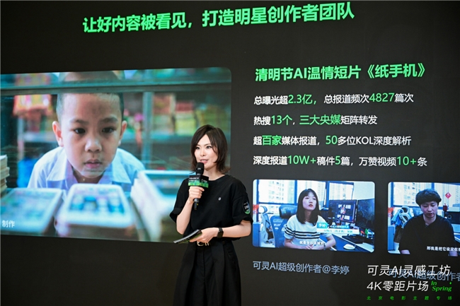 会上,王若暄还分享了过去半年涌现出来的爆款作品以及商业化探索。就在刚刚过去的清明节,可灵AI超级创作者杨选、李婷利用可灵AI制作的清明短片《纸手机》,被网友称为用最“没人味”的AI,拍出今年清明最“有人味”的短片。作品的出圈也印证了好内容就是技术力和产品力最直接的背书。