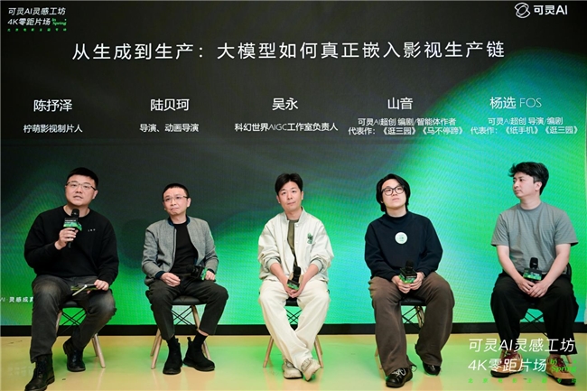 在圆桌论坛环节,柠萌影视制片人陈抒泽作为主持人,与《三体》视觉导演/动画导演、《太平年》导演陆贝珂,科幻世界AIGC工作室负责人吴永,可灵AI超级创作者、编剧山音,可灵AI超级创作者、导演杨选等多位资深从业者围绕AI在影视产业链中的角色与边界展开对话。嘉宾们从制片、视效、IP运营、编剧、导演等多元视角,探讨了AI技术如何重塑影视工业流程,以及人机协作的边界与可能。