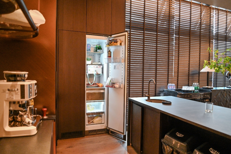 GRF深知高净值人群的独立社交需求,其全嵌冰箱+酒柜组合系列,不仅负责延长食材至鲜时限与顶尖食味,更配设精密恒温藏酒及独立的雪茄茶叶私域,满足每一种生活憧憬与圈层社交需求。拥有GRF的家庭,厨房已经不仅仅是辅助烹饪的家政空间,更是承载生活质感、见证高朋满座的圈层生活模块。而冰箱也不再是厨房中突兀的电器,是与整体设计融为一体的建筑组建,也是对高端生活品质的追求与全面向好的自我嘉奖。